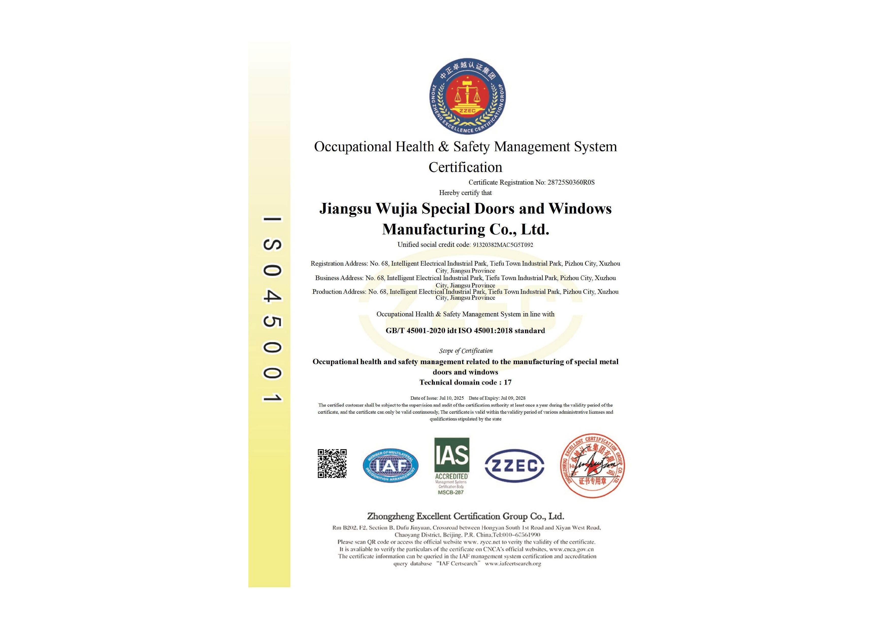 上一篇:ISO45001职业健康安全管理体系认证证书中文版 下一篇:ISO14001环境管理体系认证证书英文版 << 返回